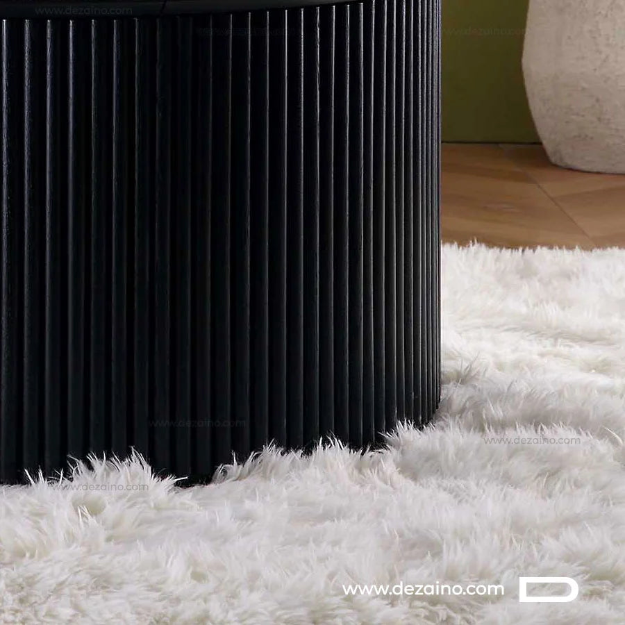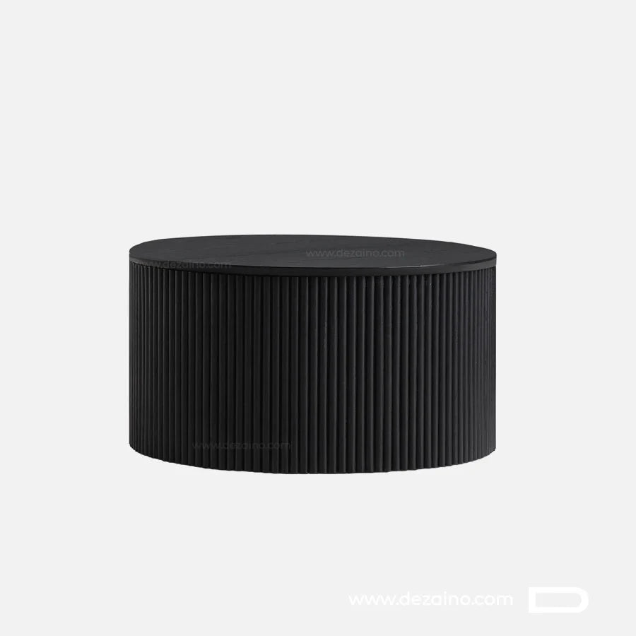 La base en bardage en bois de la table Oeka est à la fois unique et en phase avec les tendances actuelles de décoration intérieure, ajoutant ainsi une touche de personnalité à votre maison, appartement ou villa. Elle combine un pied en bois à la finition mate avec un plateau en MDF au motif bois noir.